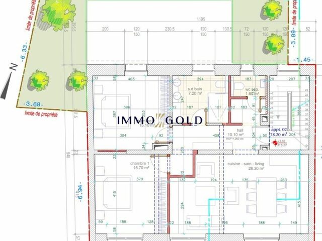 Immo GOLD vous propose en exclusivité ce bel appartement d’une surface utile de 80,95m², sis au 1ier étage dans une résidence de 3 unités (future rénovation) comprenant: